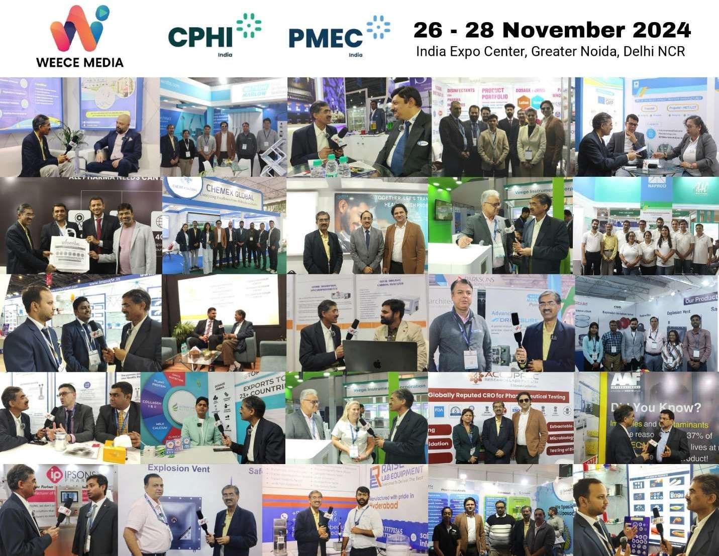WEECE Media team lead by Mr. Tarun Tyagi Director, Mr. Sanjiv Mathur, General Manager and Mr. Shubh Srivastava interacted with the exhibitors in Pharma and health companies during CPHI India and PMEC India held at India Expo Centre Greater Noida Delhi NCR. The coverage was supported by Global PHT 2025, Pharma Trends 2025, Rally for Jobs, and Rally for Startups, amongst others; WEECE Media was featured in more than 30+ national and global interviews and the event coverage.