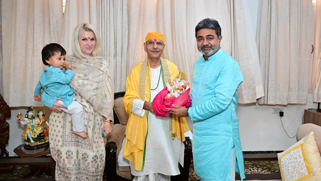 October 6, 2025:-New Delhi: During the ongoing Shri Ganesh-Lakshmi Mahayagya 2025 at Anand Dham Ashram, New Delhi, Dr. Abhishek Verma, Chief National Coordinator (ShivSena NDA Alliance & Elections), visited the ashram along with his family.