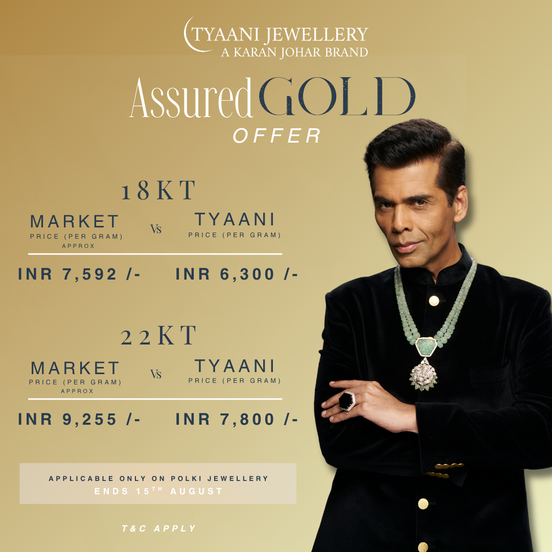 Mumbai, 26 July 2025 — Tyaani Jewellery by Karan Johar, one of India’s leading jewellery brands, ushers in the festive season with the launch of its biggest-ever Assured Gold Offer, giving customers a rare opportunity to buy handcrafted fine jewellery at significantly reduced gold rates compared to the rising market prices.